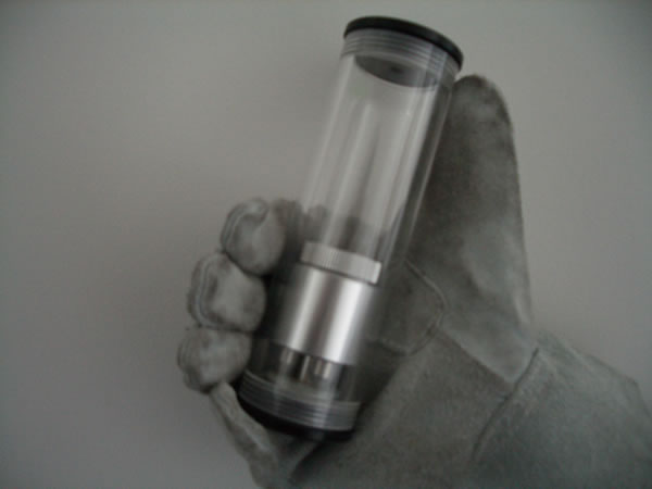 凍結処理が完了したチューブホルダーをアウターケースに入れて手で上下に下に叩くように振り試料を破砕します。